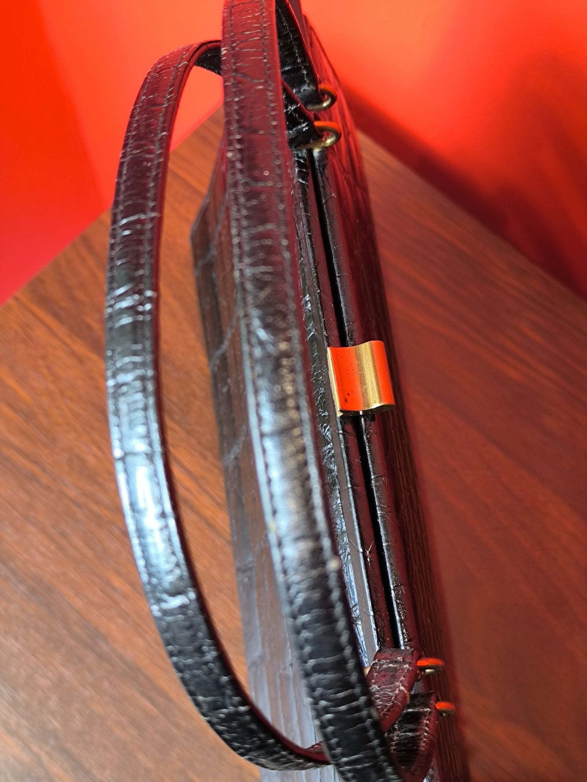 Vintage 1960s D Exklusiv Genuine Crocodile Leather Handbag