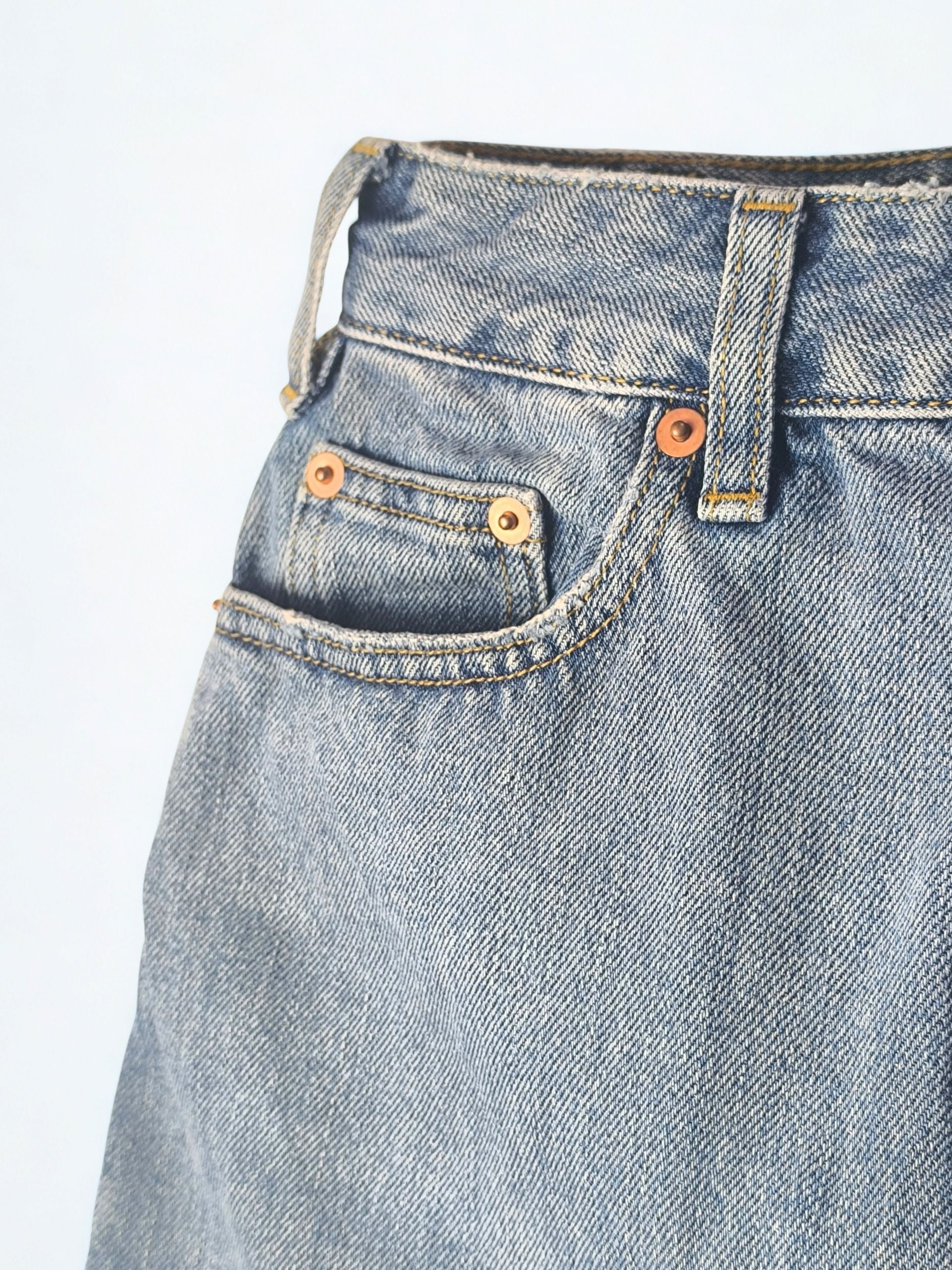 Features: Raw hem, 5-pocket design, belt loops, sturdy denim