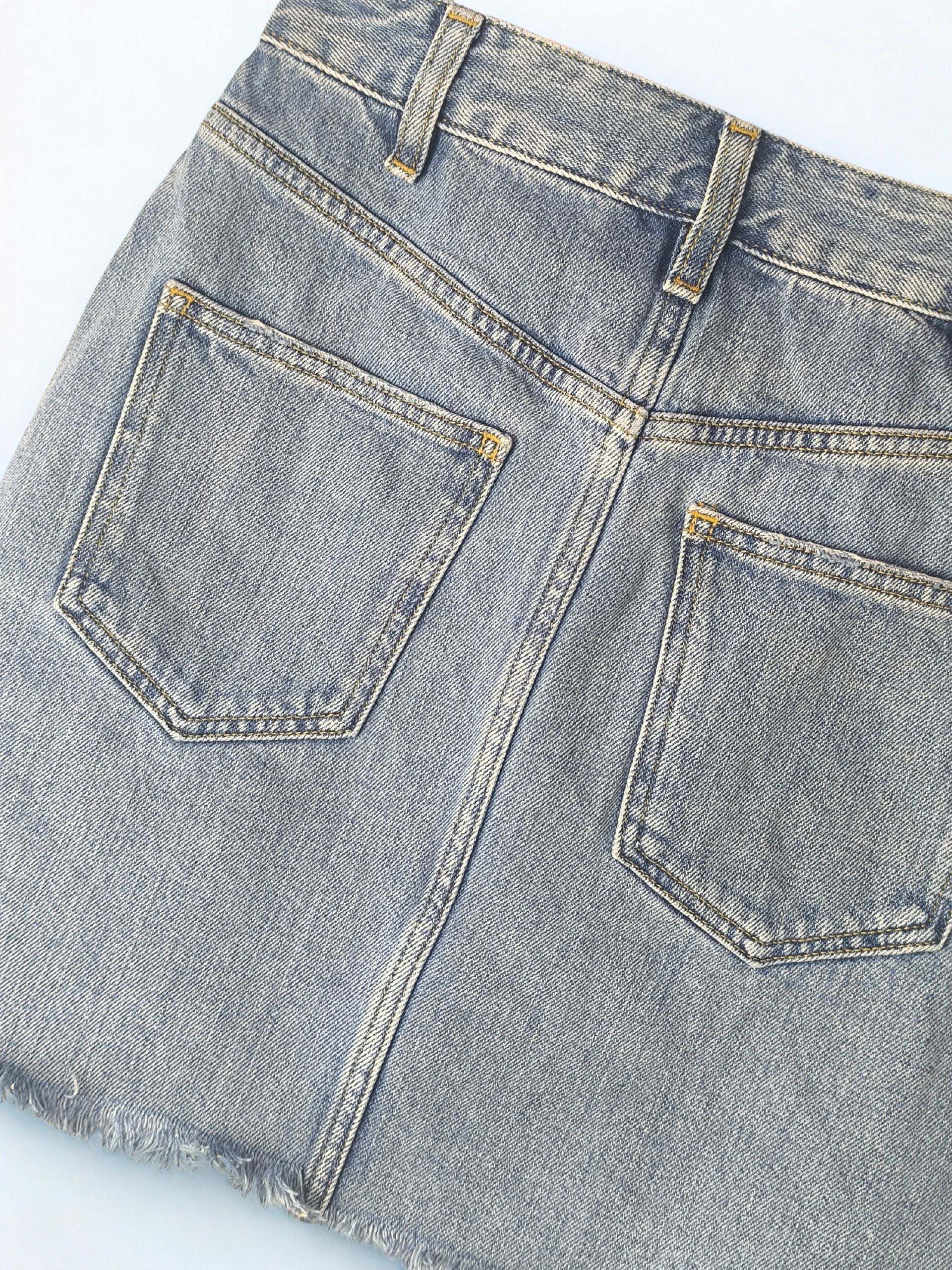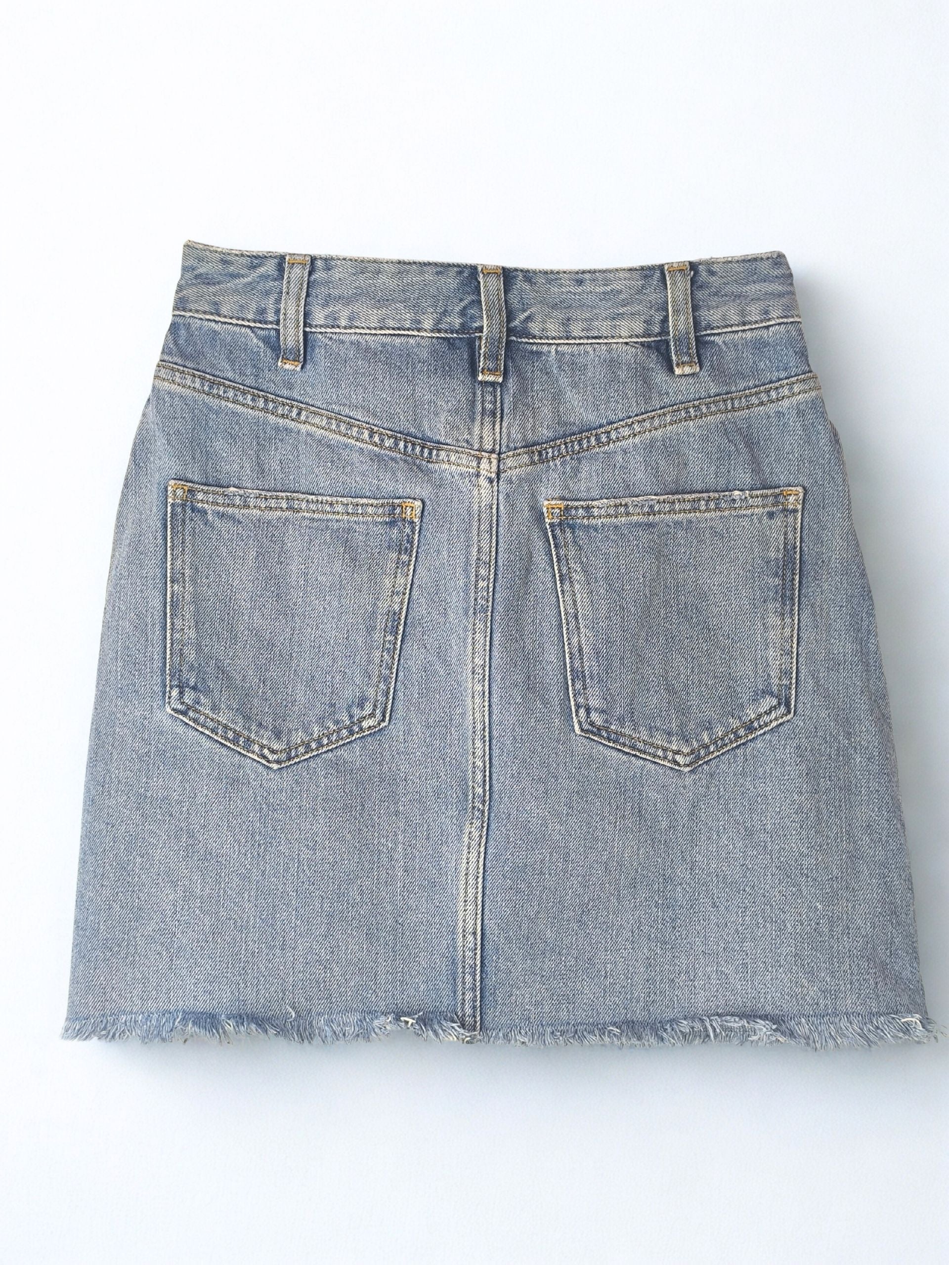 Classic high-waisted denim mini skirt by ASOS in a vintage-style mid-wash blue. Features a 5-pocket design, belt loops, copper-tone rivets, and a raw-cut hem for an effortless worn-in look. Made from 100% cotton for structure and breathability.
