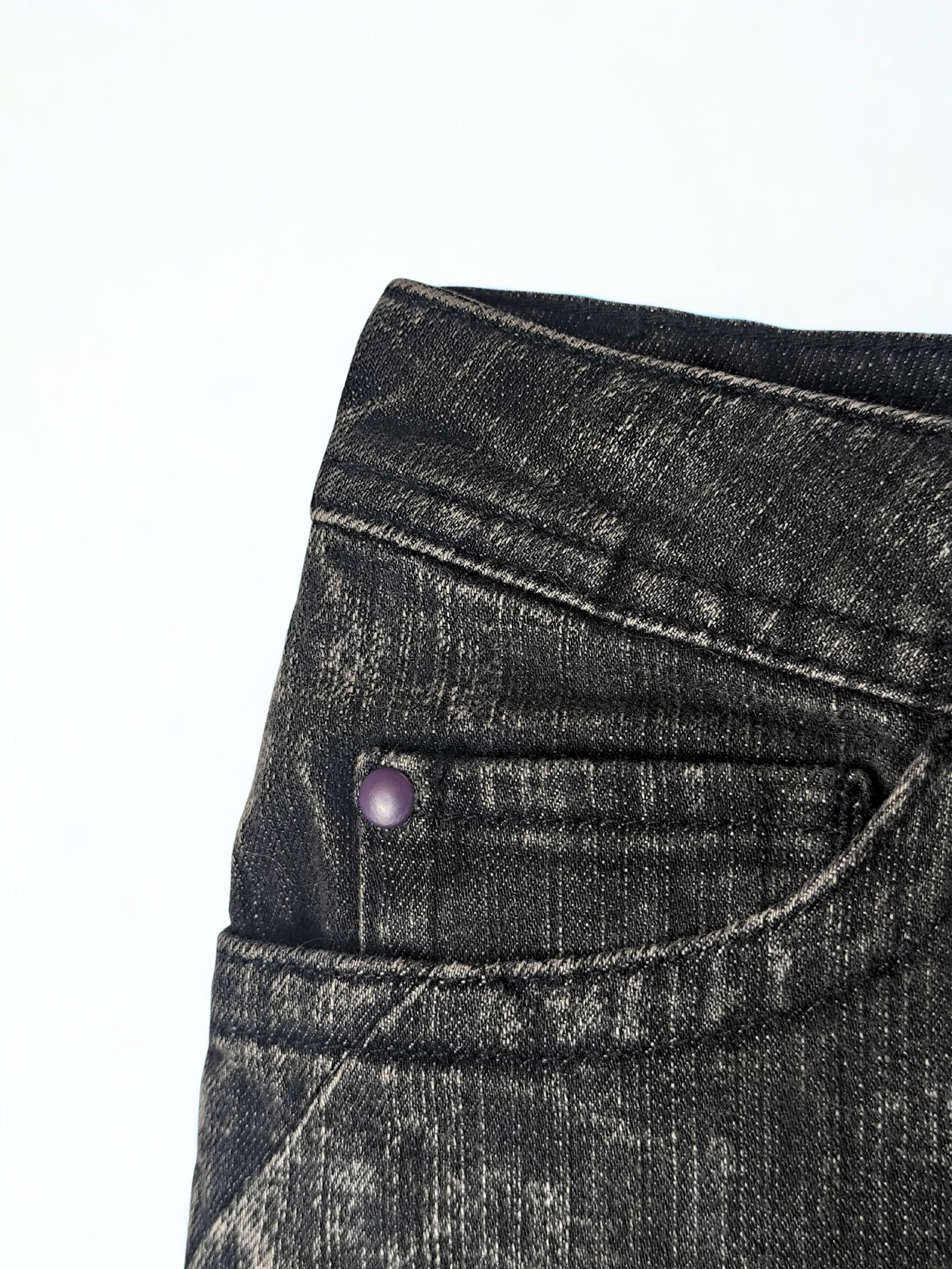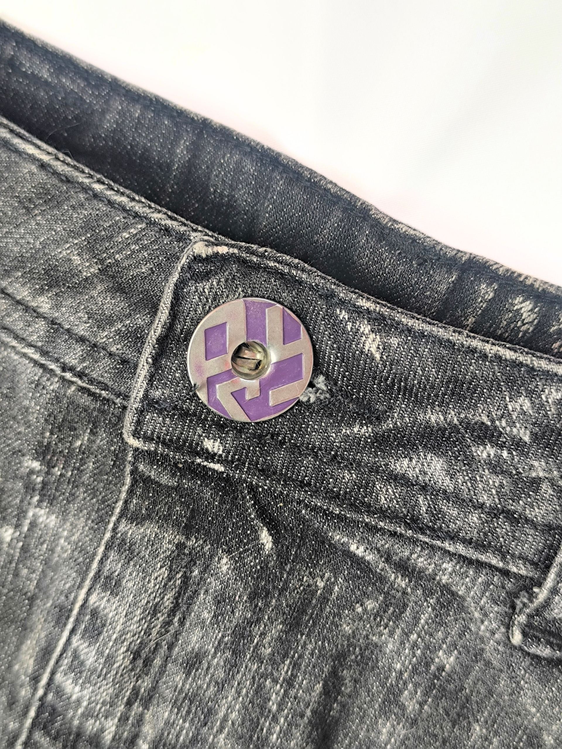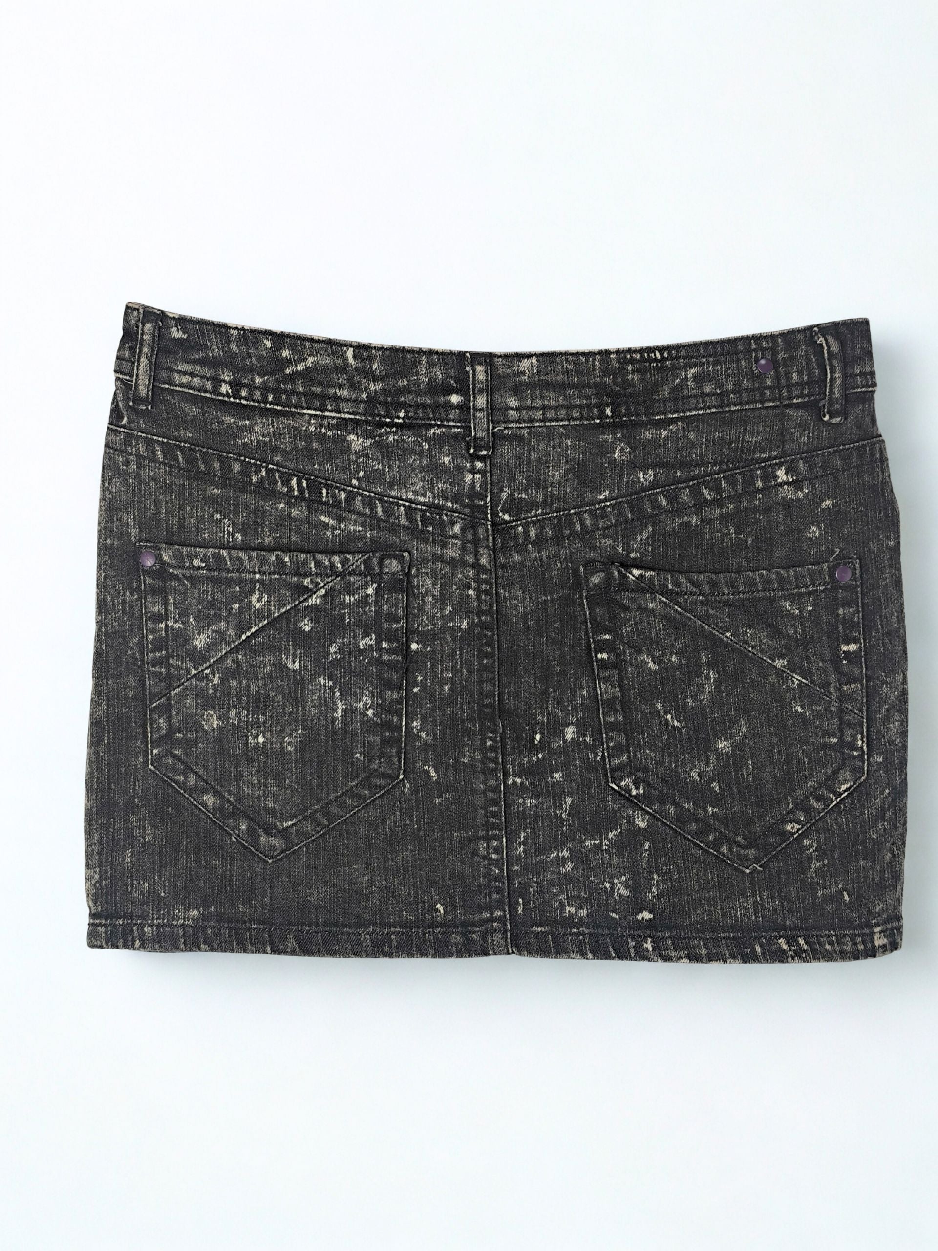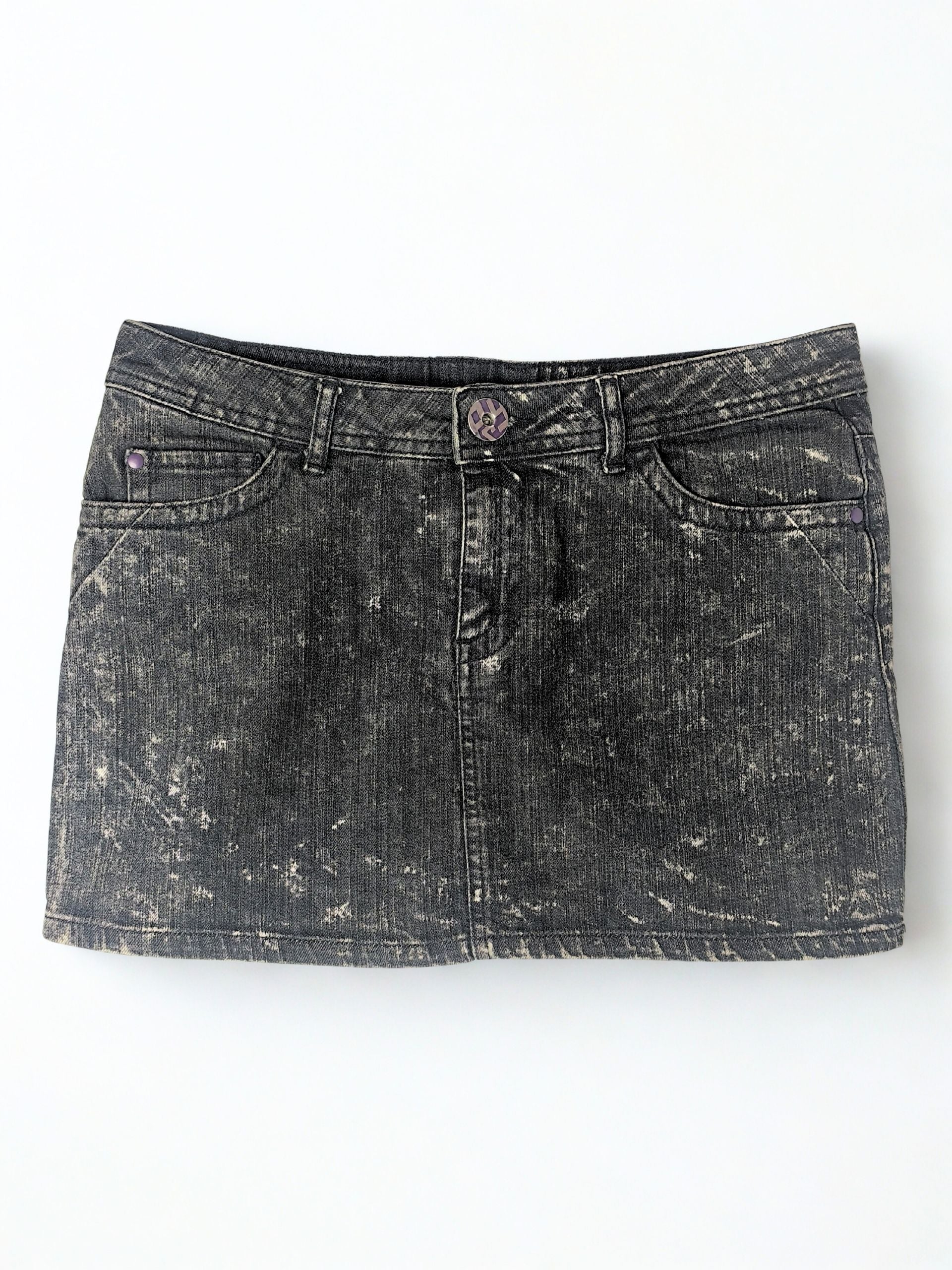 Channel your inner 2000s rebel with this Divided by H&M mini skirt, crafted from black acid-washed denim with a distressed look. The skirt features classic 5-pocket styling, belt loops, and standout purple rivets and a geometric logo button that add a playful twist. Made in Tunisia, it's a stretchy blend of 98% cotton and 2% elastane, offering a flattering fit with a touch of comfort.