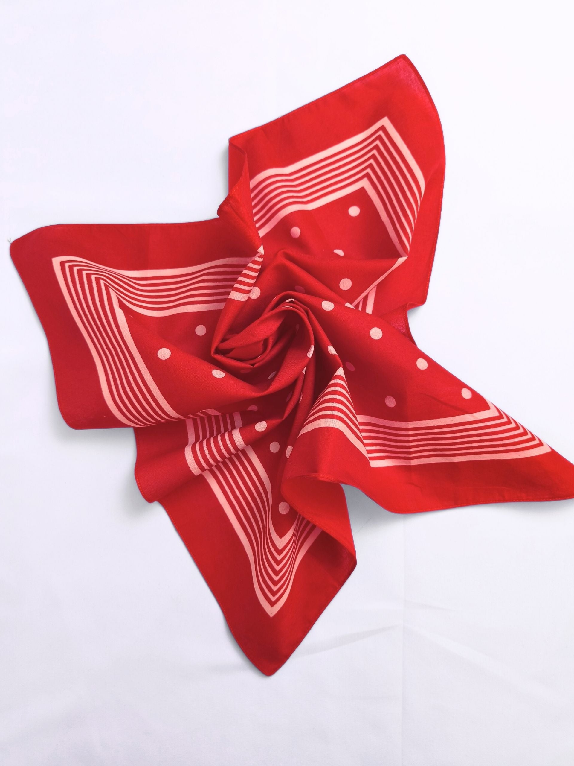 Vintage Red Polka Dot & Stripe Bandana – 100% Cotton