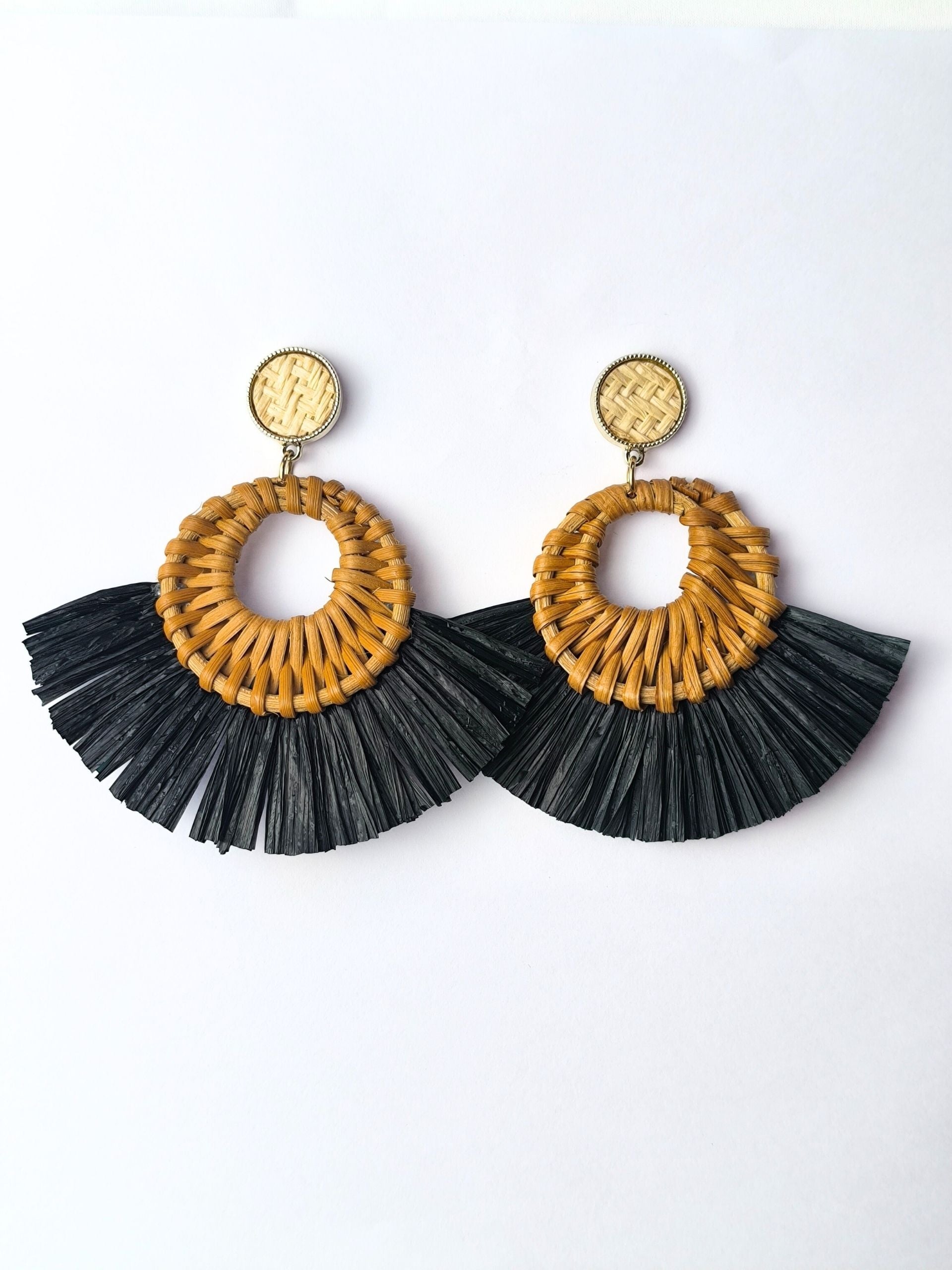 Deadstock Raffia Fan Earrings – Boho Rattan Statement