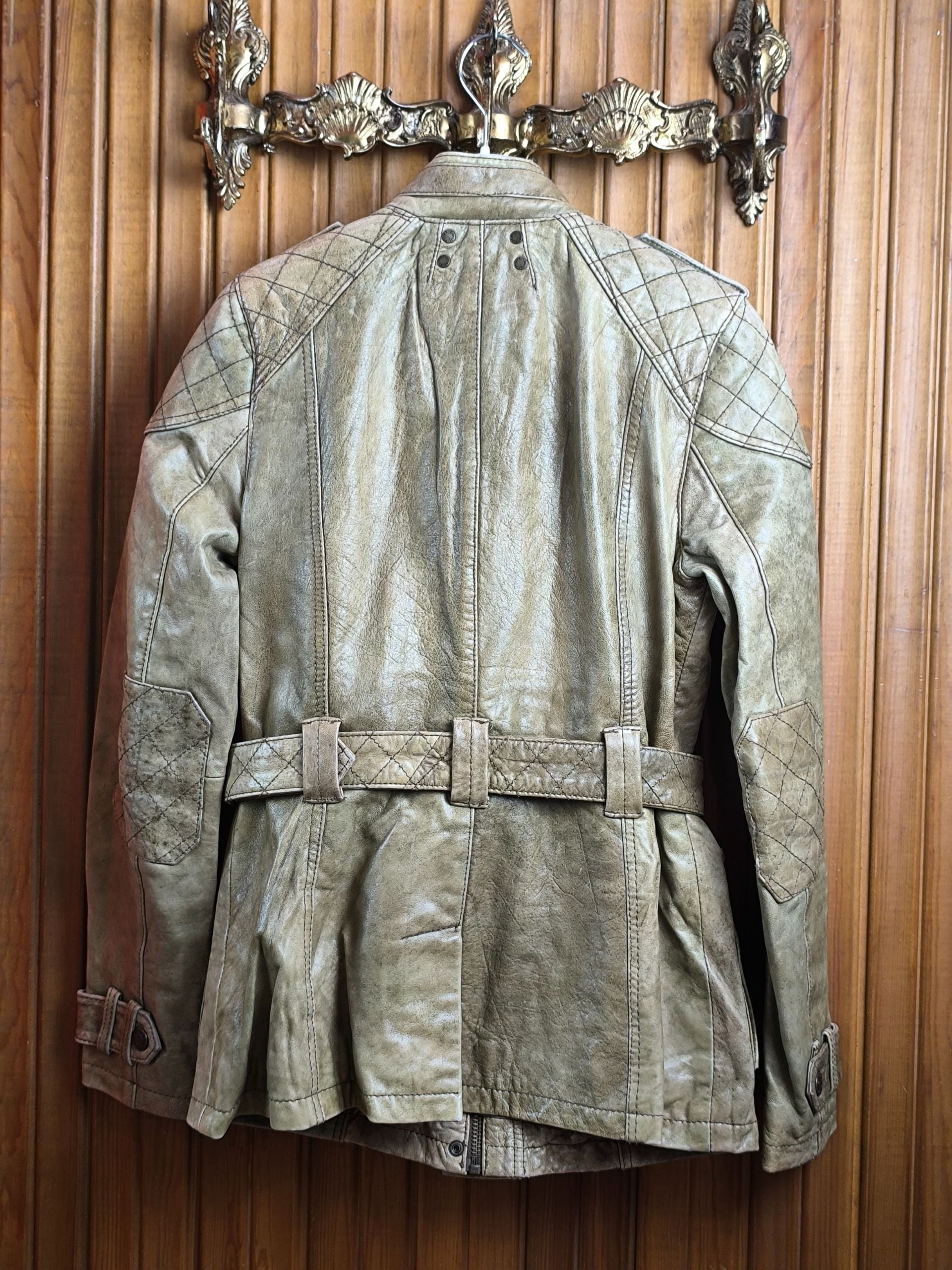 Features: Belted waist, quilted shoulders & elbows, four front pockets, branded hardware