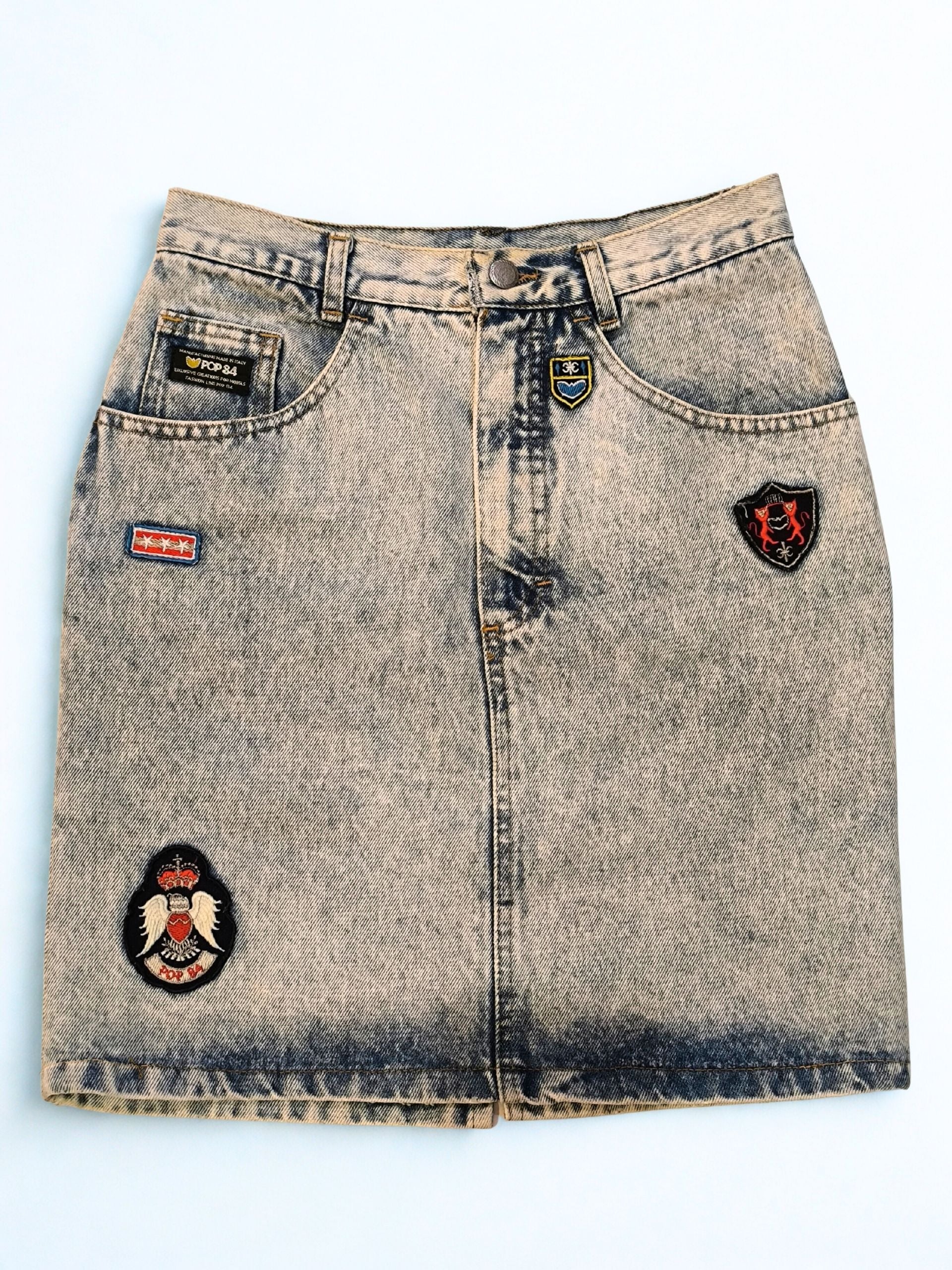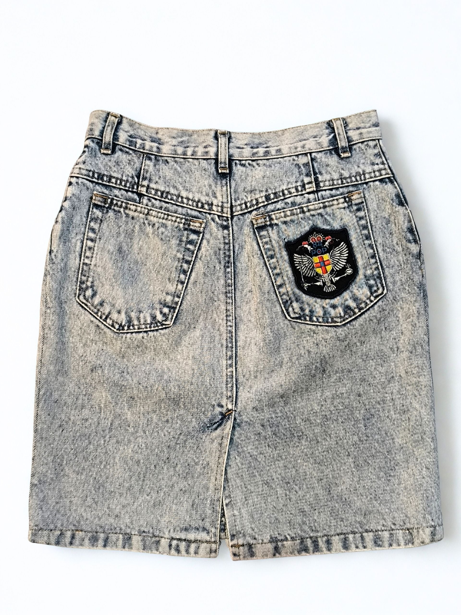 Vintage 80s-90s High Rise Acid Wash Denim Skirt "POP84"